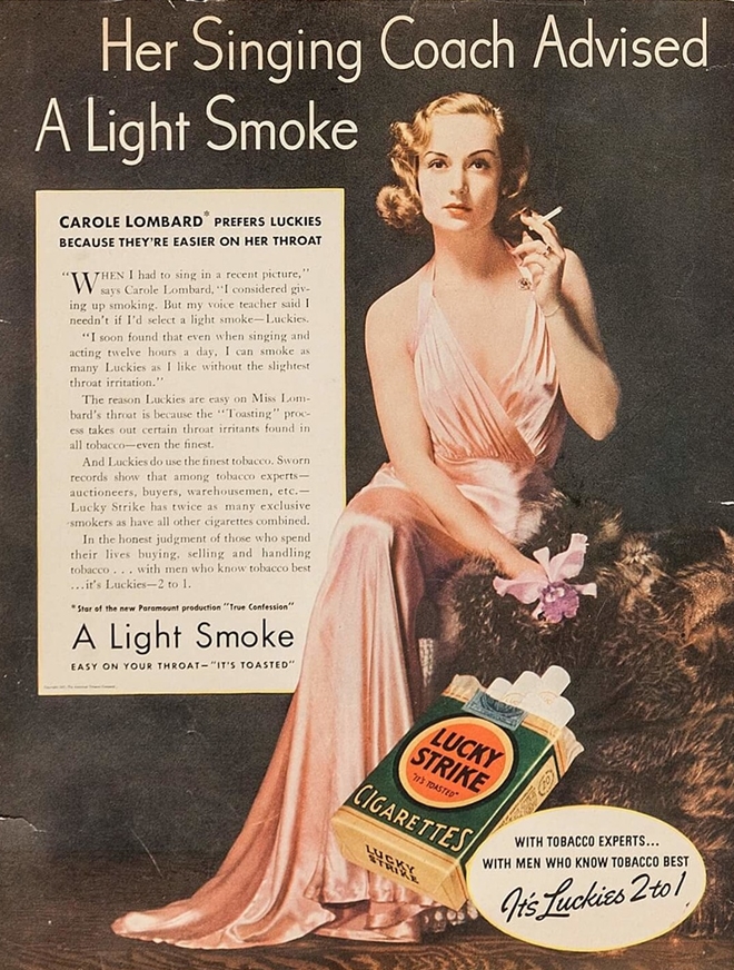 "Thầy dạy nhạc khuyên cô ấy nên hút một điếu" - poster quảng cáo thuốc lá điếu Lucky Strike mang đậm phong cách Edward Bernays.