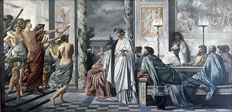 | Bữa tiệc của những nhà thông thái bàn về tính ái. Tranh do họa sĩ Anselm Feuerbach thế kỷ 19 ghi khắc lại. |