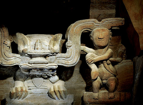 | Bảo vật quốc gia Nghê cõng chân đèn. Gốm thế kỷ 17. |