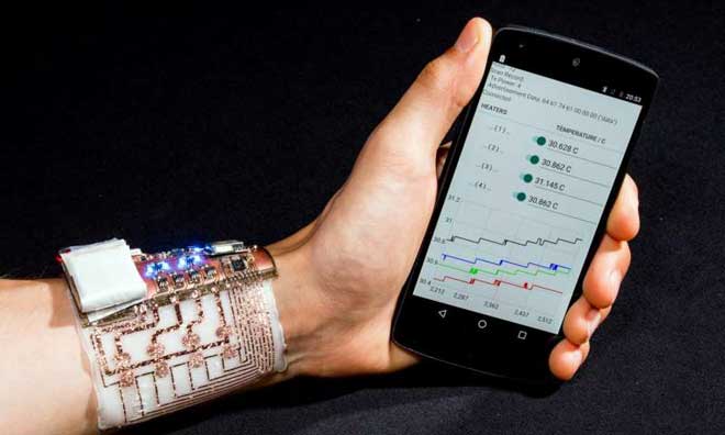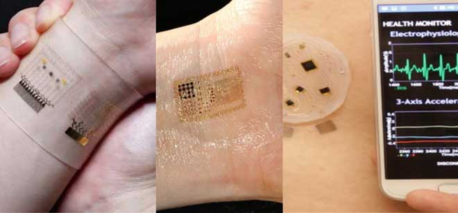 Ví dụ như, các nhà khoa học đến từ Đại học Tokyo (Nhật Bản) đã sáng chế da điện tử có thể dán lên tay để đo các dấu hiệu về sức khỏe. Các dữ liệu trên da được chuyển tới điện thoại nhờ kết nối không dây, cực kỳ hữu ích với bệnh nhân khi không cần máy móc cồng kềnh để chẩn đoán.