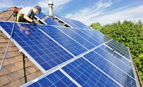 | Mặt trời cung cấp một nguồn năng lượng dồi dào và không sản sinh ra khí CO2. Ảnh: Lắp đặt các tấm pin quang điện. |