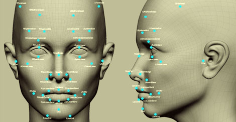 Những điểm nút trên khuôn mặt được máy tính đánh dấu để nhận dạng.