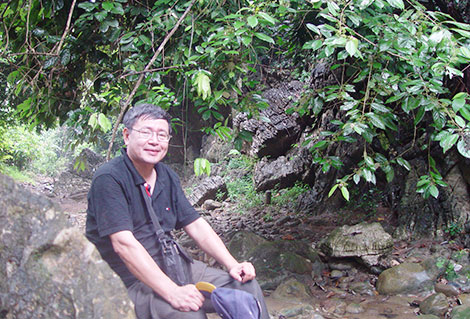 Tiến sĩ Nguyễn Văn Việt trên đường leo núi nghiên cứu về các cỗ quan tài treo.