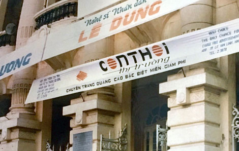 | Quảng cáo ra mắt tờ Con thoi thị trường, một trong những chuyên trang quảng cáo đầu tiên (1993) tại Nhà hát Lớn Hà Nội. |