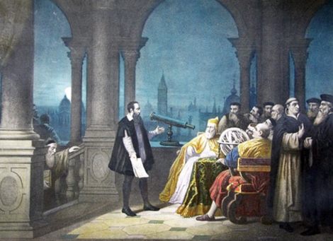 Chính Galileo sau khi quan sát bầu trời và sự lên xuống của thủy triều đã gửi tác phẩm của mình, cuốn “Dialogue on the Two Chief World Systems”, lên đức Giáo hoàng Urban VIII trình bày những bằng chứng về việc Trái đất không phải là trung tâm vũ trụ mà chỉ là một trong những hành tinh quay quanh Mặt trời. Nhưng ý tưởng của ông đã bị coi là dị giáo và sau khi bị tra xét ở tòa án Rome năm 1633, ông đã bị kết án quản thúc tại nơi làm việc cho đến khi qua đời vào năm 1642.