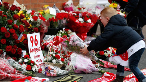 | Những bông hoa tưởng niệm 96 nạn nhân xấu số ở sân Hillsborough, Anh Quốc. |
