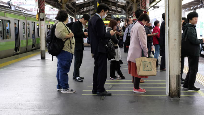 Thu Trang, cô sinh viên người Bắc Giang đang theo học ở Osaka mà chúng tôi có duyên gặp gỡ khi đang lớ ngớ tìm line tàu điện nói với chúng tôi rằng, ở Nhật, người ta không đo khoảng cách bằng km mà sử dụng cụm từ thời gian như bao nhiêu phút thì đến nơi. Do đó, phong cách đi bộ của người Nhật rất nhanh và họ luôn nhìn đồng hồ để sao cho bắt kịp chuyến tàu. Chuyện xếp hàng ở Nhật cũng là một thói quen hàng ngày.