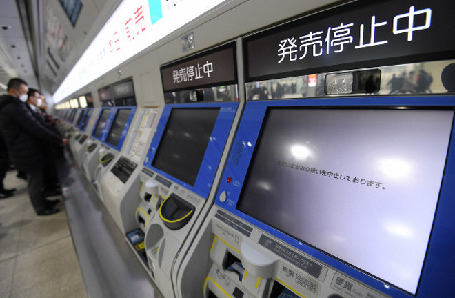 | Khu vực bán vé tự động trong nhà ga ở Nhật. |