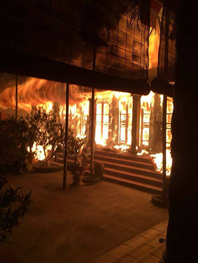 | Cháy lớn tại chùa Tĩnh Lâu tháng 11-2016. |