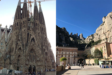 | Thánh đường Sagrada Familia dự định hoàn thành vào năm 2026 (ảnh trái) và tu viện trên đỉnh núi Montserrat. |