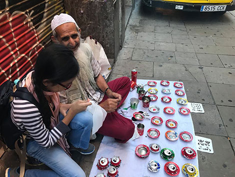 | Người bán hàng rong tại Barcelona. |