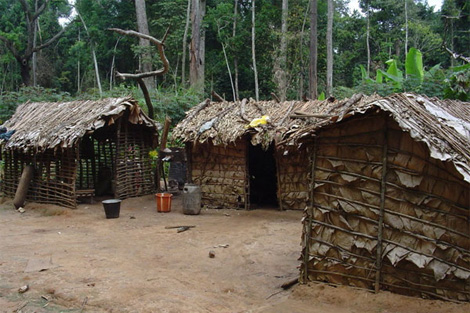Lều trại của người Pygmy.