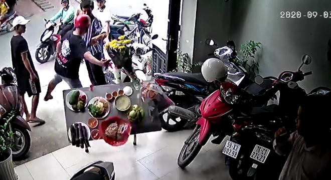 Tại đường Tô Hiến Thành, quận 10, chủ một tiệm buôn bán chỉ biết cười trừ khi vừa bê con heo quay ra chưa kịp đặt lên mâm cúng thì bị nhóm "cô hồn sống" nhào vào xô ngã rồi giật con heo quay trên tay chạy mất.