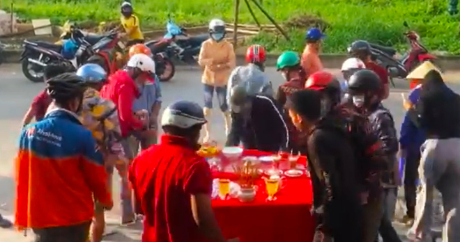 Một đoạn clip khác ghi lại hình ảnh cúng cô hồn của một gia chủ trên đường Huỳnh Văn Bánh (quận Phú Nhuận). Khi gia chủ thắp nhang cúng xong, một nhóm "cô hồn sống" nhào vào tranh nhau giật con gà cúng, tiền bạc. Nhóm này vừa chuyên nghiệp vừa... "có tâm" khi giật cô hồn xong còn quay ra giúp gia chủ… rải muối, gạo.