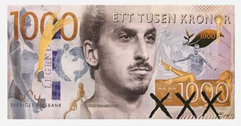 Tháng 7-2017 vừa rồi, Ibrahimovic đã đưa lên Instagram mẫu thiết kế tờ giấy bạc có hình ảnh của mình để tặng người hâm mộ. Đáng tiếc là các fan của siêu sao vẫn chưa thể chứng kiến thần tượng của mình xuất hiện chính thức trên tờ giấy bạc của Thụy Điển.
