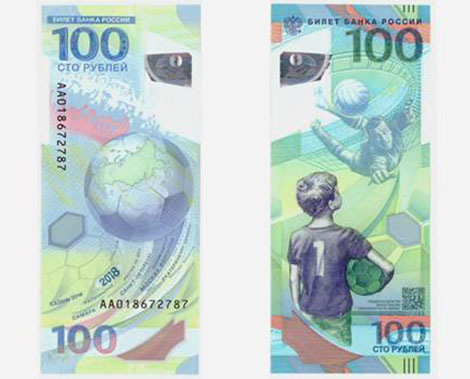 1. Mặt trước của tờ giấy bạc 100 rúp mới của Nga, theo ý tưởng của Ngân hàng Trung ương, “tượng trưng cho sự kế thừa của các thế hệ”: một cậu bé mơ ước lặp lại thành tích của cầu thủ nổi tiếng thời Xôviết, thủ môn Lev Yashin.