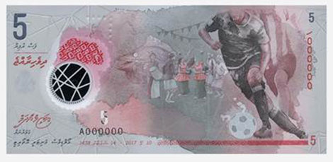 5. Năm 2017, đảo quốc Maldives cho phát hành tờ giấy bạc polymer mệnh giá 5 rufiyaa. Mặt trước tờ giấy có hình một cầu thủ bóng đá, có thể dễ dàng đoán là đội trưởng đội tuyển quốc gia Ali Ashfaq.