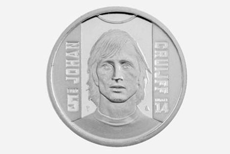 8. Năm 2017, Hà Lan cho phát hành đồng tiền xu 5 euro với chân dung Johan Cruyff - một trong những ngôi sao bóng đá xuất sắc nhất thế kỷ XX, 3 lần đoạt giải thưởng Quả bóng vàng.
