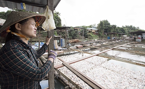 | Từ 20 giờ đêm 3-1 đến 3 giờ sáng 4-1-2016, hơn 10 tấn cá của gia đình chị Phạm Thị Ngần đã chết trắng bè, từ cá giống nhỏ, cho đến loại lớn hơn như cá trắm, chép, điêu hồng... đều không thể cứu nổi. |