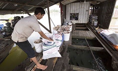 Khác với những bè cá khác, hộ gia đình của anh Vị tập trung nhiều vào nuôi cá trắm giòn, cá chép giòn… có giá trị cao. Cá giống sau khi nuôi đủ kích cỡ, được nuôi riêng và cho ăn đậu tương để ra cho ra sản phẩm khác biệt. Giá thành phẩm mỗi cân cá giòn lên tới 120-160.000đ/kg, nên thiệt hại cũng nhiều hơn hẳn so với các hộ nuôi sản phẩm thường.