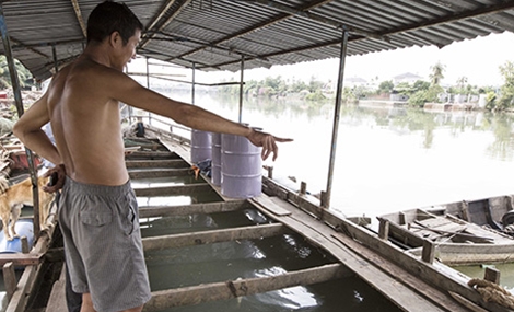 | Anh Nguyễn Hồng Văn, chủ bè 20 ô cá nuôi gồm cá lăng, cá trắm, chép và điêu hồng: “Tôi không biết chính xác nhà máy nào thải ra, nhưng với kinh nghiệm trong nghề, tôi đảm bảo danh dự cá chết là do nguyên nhân nhà máy xả thải không qua xử lý”. |