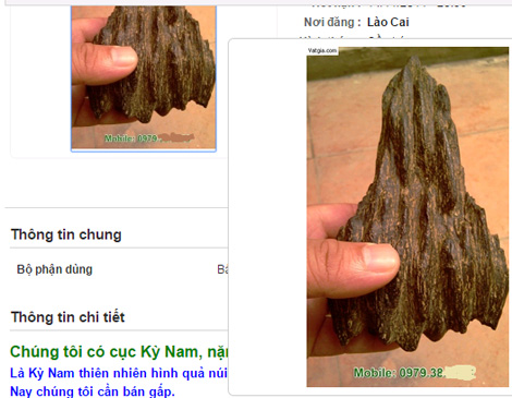 | Khối kỳ nam được cho là hàng thật và kiểu rao chào cục kỳ nam với giá bán gần 4 tỉ đồng trên một trang rao vặt. |