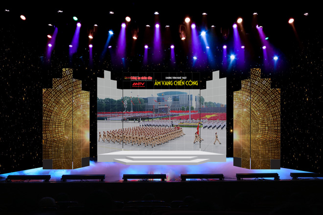 Phối cảnh sân khấu chương trình nghệ thuật “Âm vang chiến công” diễn ra ngày 16-8-2019.