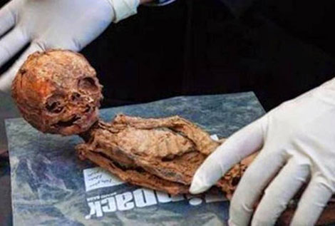 | Xác ướp chỉ dài 25cm được khai quật ở Iran. |
