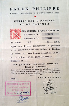 Bà K.H. cho biết: "Mỗi chiếc đồng hồ bán ra, Hãng Patek Philippe đều lưu trữ hồ sơ, trong đó có rất nhiều thông tin gồm: ngày xuất xưởng, tên riêng của đồng hồ, số sêri, tên khách hàng... Sau khi mua được 1 chiếc PP, tôi đều gửi thư yêu cầu đến hãng đề nghị xác minh. Tôi phải nộp phí cho hãng với giá 2.200USD bao gồm tiền vệ sinh bảo quản, tiền trích lục in sao giấy khai sinh và một số chi phí khác. Sau khi hoàn tất thủ tục xác minh, hãng giao đồng hồ lại cho tôi trong 1 chiếc hộp bảo quản. Hộp bảo quản nằm trong một chiếc hộp lớn hơn. Điều quan trọng là hãng cung cấp cho tôi một giấy khai sinh. Cũng nhờ thủ tục xác minh này, tôi phát hiện chiếc PP của bà Cecile không có hồ sơ".