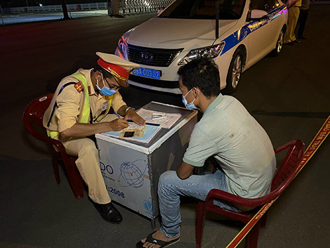 Lực lượng CSGT lập biên bản một trường hợp vi phạm an toàn giao thông.