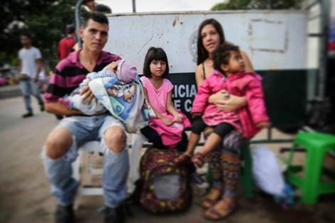 | Một gia đình ở Venezuela đang gặp khó khăn tại biên giới. |