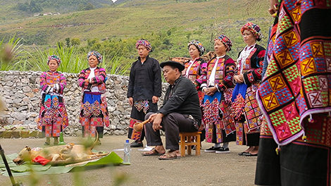 Cảnh hành lễ trong Lễ hội cầu mưa của người Lô Lô ở Mèo Vạc.