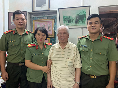 | Đồng chí Phạm Gia Đốc cùng các chiến sĩ cảnh sát bảo vệ. |