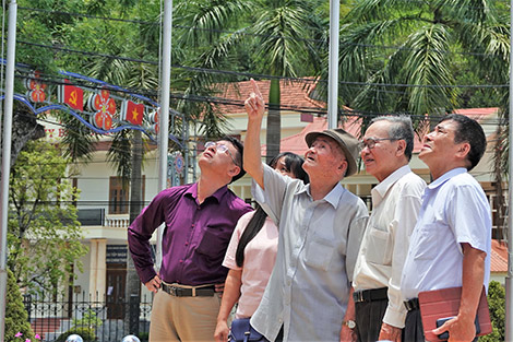 | Đồng chí Đặng Nam cùng người thân thăm lại khu di tích truyền thống Kim Sơn, Kiên Thụy, Hải Phòng. |