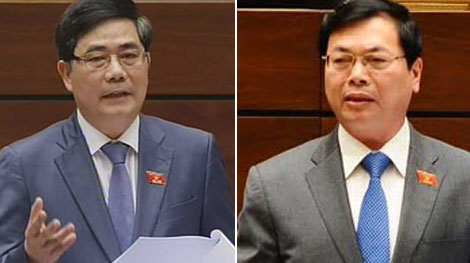 | Bộ trưởng Cao Đức Phát và Bộ trưởng Vũ Huy Hoàng trả lời chất vấn trước Quốc hội. |