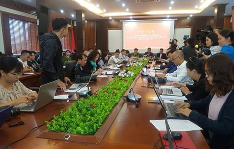 | Họp báo cung cấp thông tin vụ việc xảy ra tại tTrường Tiểu học Tiên Sơn, huyện Việt Yên, Bắc Giang. Ảnh: Thanh Xuân. |