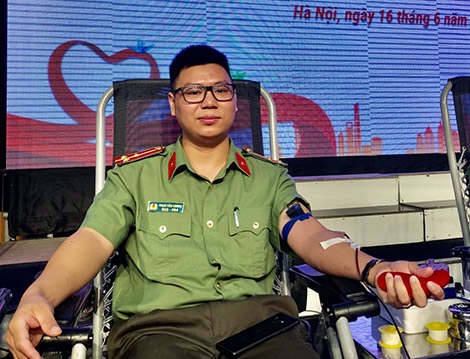 | Với Trung úy Nguyễn Tiến Trung - Bí thư Đoàn Thanh niên Báo Công an nhân dân, hiến máu là mệnh lệnh từ trái tim. |