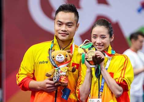 | Vận động viên wushu Phạm Quốc Khánh đoạt Huy chương Bạc và Dương Thúy Vi đoạt Huy chương Đồng tại ASIAD 2018. |