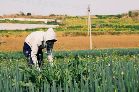 Một lao động nhập cư Việt Nam, cũng thuộc diện bị ngược đãi, đang chăm sóc một ruộng nhân sâm ở miền Nam Hàn Quốc, thời gian làm việc có thể kéo dài đến 13-14 giờ/ngày và đồng lương rất thấp. |