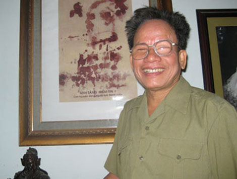 Người nghệ sĩ trong bộ quần áo quân nhân đã sờn nếp, niềm nở với cuộc sống, tiếng cười của ông giòn tan mỗi lần ai đó khéo đùa. Dường như, bóng tối ở phía trước mắt chỉ là cái cớ để cho ông sáng tạo, để cho niềm cảm hứng về đồng đội, về những năm tháng chiến tranh, trào lên nơi ngón tay.