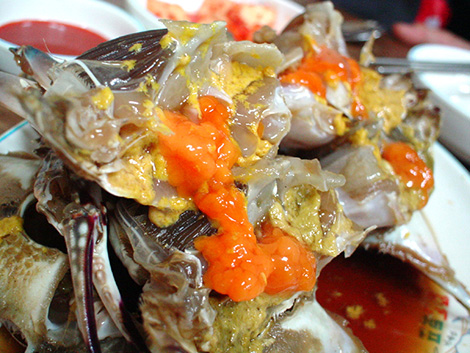 Chị chủ quán nói: "Thông thường, khi khách gọi món cua gạch, nhà bếp sẽ xách lên những con cua cái còn sống để khách chọn lựa. Lúc đem xuống bếp để chế biến họ mới bơm gạch vào vì nếu bơm từ trước, cua sẽ chết".