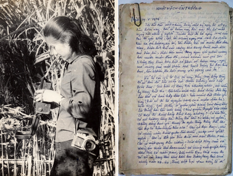 | Nhà báo Lệ Thu và nhật kí chiến trường của chị. |