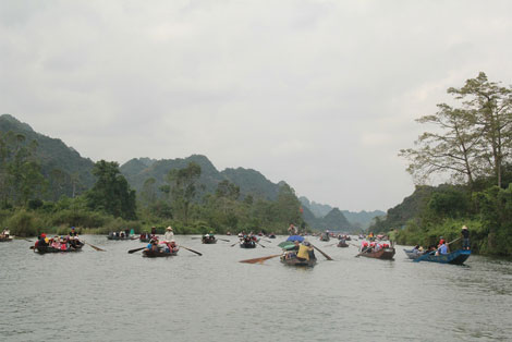 | Du khách thư nhàn trảy hội chùa Hương sau ngày khai hội. |