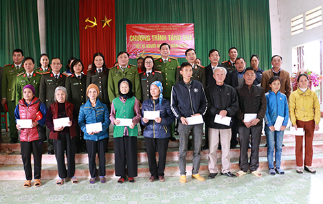 Thay mặt đoàn công tác xã hội từ thiện, Thượng tá Đặng Thị Huyền, Trưởng ban Kinh tế Pháp luật, Báo CAND chúc các hộ nghèo, gia đình chính sách vui Tết, đón Xuân cùng gia đình đầm ấm, hạnh phúc: “Món quà của chúng tôi tuy không lớn, nhưng là tình cảm chân thành của những người làm Báo CAND và Tập đoàn Dầu khí Việt Nam với mong muốn, người nghèo cũng có Tết vui. Rất mong các hộ dân tiếp tục giúp đỡ cấp uỷ Đảng, chính quyền địa phương và lực lượng Công an cơ sở làm tốt hơn nữa công tác giữ gìn an ninh chính trị và trật tự an toàn xã hội trên địa bàn, giữ bình yên cuộc sống của nhân dân”.