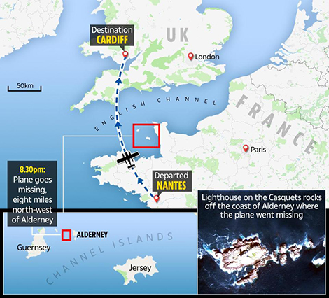 Chiếc máy bay này đã bị trục trặc động cơ tới 3 lần trước khi cất cánh. Sau khi rời khỏi Nantes vào lúc 19 giờ 15 phút ngày 21-1 vừa qua (giờ địa phương), máy bay bay ở độ cao 1.500m và mất liên lạc khi hạ thấp xuống độ cao 700m. Căn cứ vào tín hiệu ra đa thu lại được, cơ quan cứu hộ Anh bước đầu xác định địa điểm máy bay mất tích nằm cách ngoài khơi đảo Alderney khoảng chừng 24km.