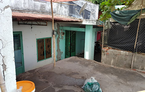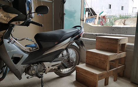 Cháu bé nói đúng, khi chúng tôi bước xuống “căn hầm” của chị, cảm giác đầu tiên là vô cùng nóng bức, ngột ngạt và thiếu ánh sáng. “Căn hầm” đi thuê của chị vốn đã chật nay lại chật chội hơn vì phải kê thêm mấy tấm gỗ làm chỗ bước lên bước xuống. Mỗi lần dắt xe đi làm, anh chị phải kê 3 lần bậc thang mới đưa xe lên được mặt đường, loay hoay mãi có hôm mất cả móng chân.