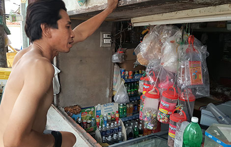 | Khách mua hàng tại 1 tiệm tạp hóa. |