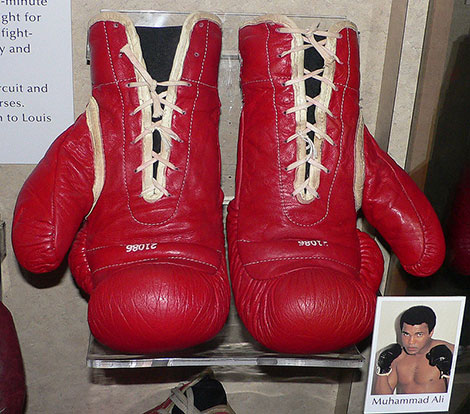 | Đôi găng thi đấu của Muhammad Ali trưng bày tại Bảo tàng Smithsonia. |