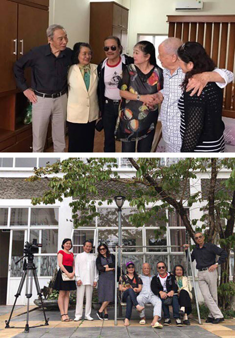 | Các nghệ sĩ và bạn bè đến thăm NSND Trần Phương. |