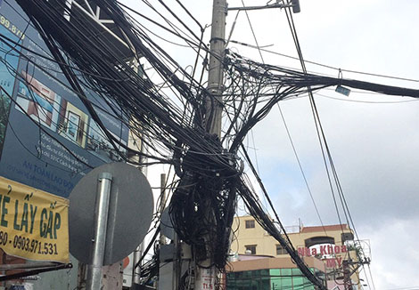 Trừ một số tuyến đường huyết mạch trung tâm thành phố tại quận 1, 3, 10... còn lại hầu hết các đường phố ngang dọc khắp nơi, mọi người ai cũng nhìn thấy những nùi dây điện, cáp quang, dây chiếu sáng, thông tin quấn nhau như những con mãng xà khổng lồ màu đen ôm lượn các cột điện. Đặc biệt tại các ngã ba, ngã tư, dây điện được nhiều cơ quan quản lý khác nhau dồn thành đống, thành cục quấn ôm cột điện.